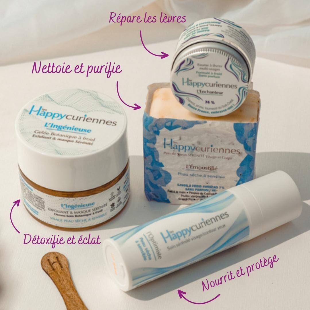Les soins Happy Thérapies: toute une gamme complète de produits naturels et bio (visage et corps) issue des terroirs paysans du Sud-Ouest: nettoyant, gommage, masque, crème, sérum, huiles, savons...